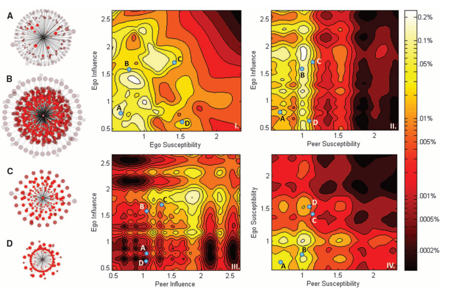 Experiments in online social networks can help us causally estimate scores of how much people influence their peersand how susceptible they are to influence from their peers. How are these people distributed on networks? Are influential people also susceptible? Nope. Are people influential because they have gullible peers? Not really -- the two are independent. Do influential people tend to have influential peers? Yep. Do gullible people cluster in the network? Nope. The answers to these questions help us understand how contagions -- large connected individuals "doing the same thing together" -- come about.