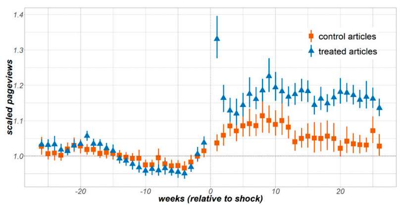 Using a natural experiment driven by the Wiki Education program (where people add content to Wikipedia as part of college courses), we learn that: When people edit Wikipedia pages and add content, it causes others to view the pages more. That extra attention also spills over onto yet other pages, and even more so across newly created links. This attention also causes editors to focus more on developing pages. This discovery can be turned into a policy to help magnify spillover effects, driving attention to the places in Wikipedia that need it the most!